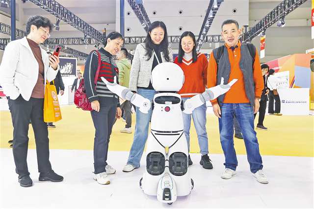 11月7日,第十九届中国(重庆)老年产业博览会现场,市民与机器人互动。记者 尹诗语 摄/视觉重庆 |