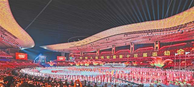 11月9日,广东奥林匹克体育中心,第十五届全国运动会开幕式现场,演员正在表演。 |