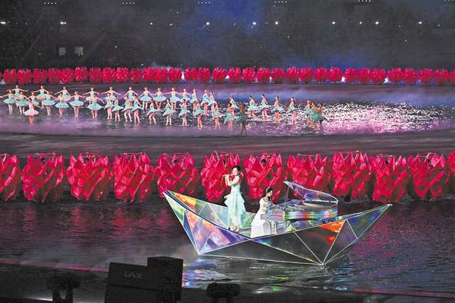 开幕式前,当记者拿到节目单时,就意识到今晚势必将是一场“全民演唱会”——暖场环节出现了谭咏麟1985年发布的经典老歌《朋友》,文艺演出环节更有Beyond乐队的《海阔天空》,以及刘德华经典的《中国人》。