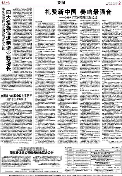 四大措施促进制造业稳增长礼赞新中国 奏响最强音全国宣传部长会议在京召开债权转让通知暨债务催收联合公告