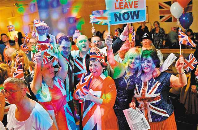 一月三十一日,在英国沃灵顿,“脱欧”支持者参加庆祝活动。新华社/法新 |