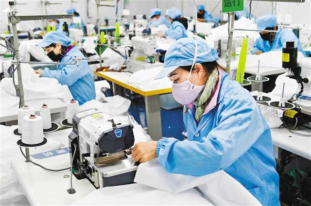 二月三日,在广西南宁腾科宝迪生物科技有限公司,工人在赶制医用隔离衣。新华社记者 陆波岸 摄 |