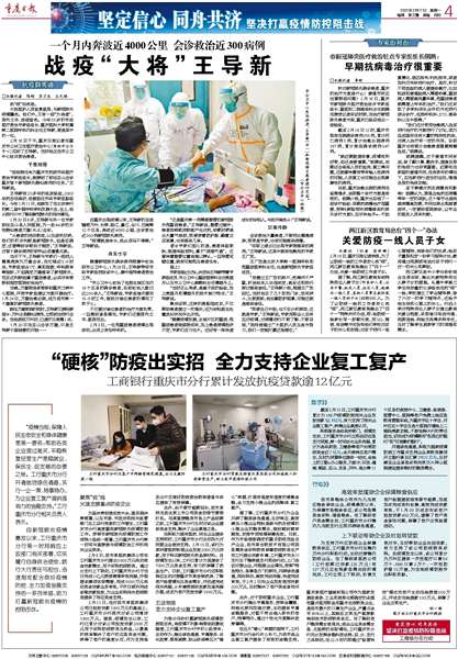 2月16日下午,重庆日报记者在重庆市公共卫生医疗救治中心(简称市公卫中心)见到了王导新。当时他正在市公卫中心驻点救治患者。
