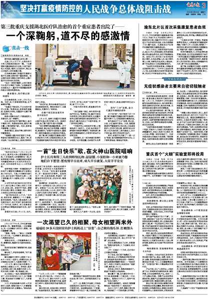 2月20日,是第三批重庆支援湖北医疗队抵达武汉的第18天。胡某的出院,给了整个医疗队莫大的鼓舞。