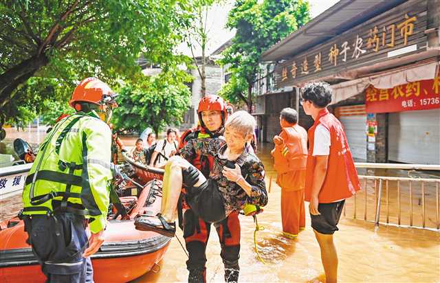 七月二十八日十二时,潼南区崇龛镇遭遇洪灾,消防救援人员在救援受灾群众。记者 齐岚森 摄\视觉重庆 |