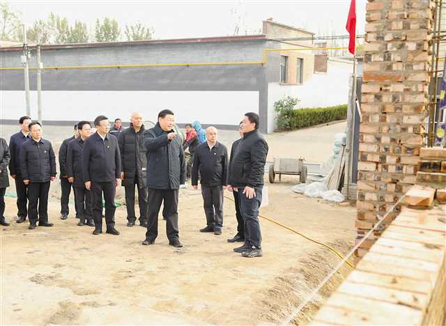 11月10日,中共中央总书记、国家主席、中央军委主席习近平在北京、河北考察灾后恢复重建工作。这是10日下午,习近平在河北保定涿州市刁窝镇万全庄村房屋重建施工现场考察。 新华社记者 鞠鹏 摄 |