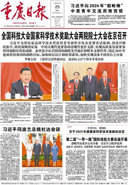 新华社北京6月24日电 全国科技大会、国家科学技术奖励大会和中国科学院第二十一次院士大会、中国工程院第十七次院士大会24日上午在人民大会堂隆重召开。中共中央总书记、国家主席、中央军委主席习近平出席大会,为国家最高科学技术奖获得者等颁奖并发表重要讲话。他强调,科技兴则民族兴,科技强则国家强。中国式现代化要靠科技现代化作支撑,实现高质量发展要靠科技创新培育新动能。必须充分认识科技的战略先导地位和根本支撑作用,锚定2035年建成科技强国的战略目标,加强顶层设计和统筹谋划,加快实现高水平科技自立自强。