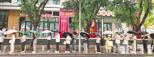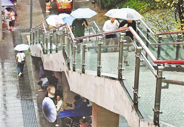 九月十二日,南岸区花红路,市民在雨中有序排队等候公交车。记者 谢智强 摄\视觉重庆 |