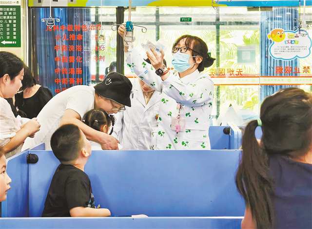 9月15日,重庆市中医院儿科病房,医护人员正在为患儿治疗。记者 崔力 摄/视觉重庆 |