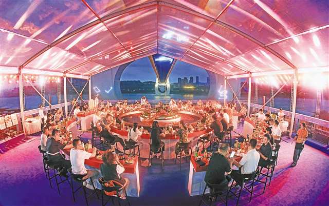 9月28日,第17届中国(重庆)火锅美食文化节在大渡口区开幕,1.2公里的江岸火锅宴汇聚了近20个品牌,促进“双节”期间文旅消费。特约摄影 钟志兵/视觉重庆 |