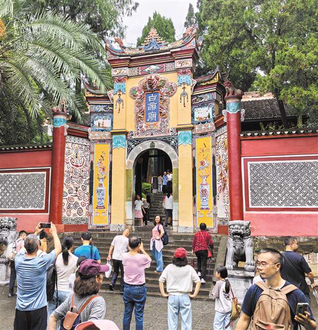 10月2日,众多游客在奉节白帝城景区游玩。国庆中秋假期,三峡库区各大景点热度持续上升。奉节县凭借得天独厚的江峡风光与深厚的文化底蕴,迎来旅游接待高峰,各大景区人气爆棚,文旅消费活力迸发。记者 罗斌 摄/视觉重庆
