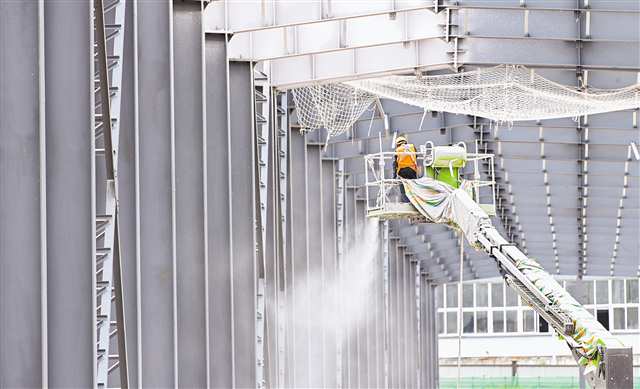 10月3日,江津区白沙工业园,由中建二局承建的白沙食品园主体厂房建设工程项目现场,工人们正加紧施工抢抓进度。