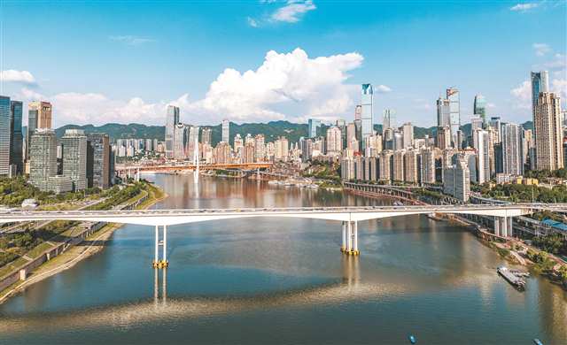 渝中区嘉陵江边,蓝天白云下的城市美不胜收。记者 郑宇 摄/视觉重庆 |