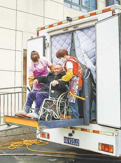 綦江区通惠街道养老服务中心,老人在“助浴快车”上享受助浴服务。(资料图片)(市慈善联合总会供图) |