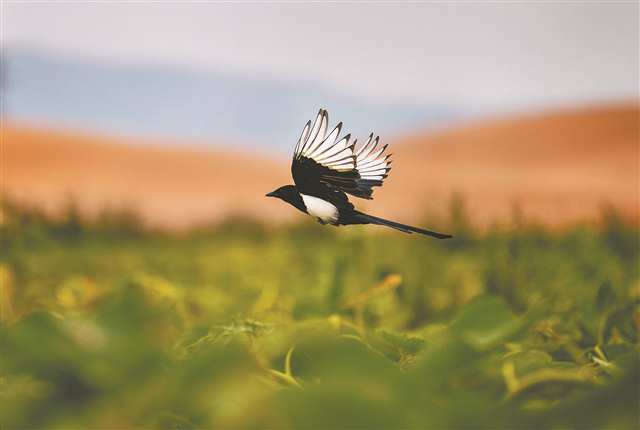 9月18日,内蒙古乌兰布和沙漠,重庆交大沙漠土壤化试验示范基地也成了许多鸟类的栖息之地。 |