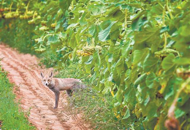 9月18日,内蒙古乌兰布和沙漠,狐狸在重庆交大沙漠土壤化试验示范基地里觅食。 |