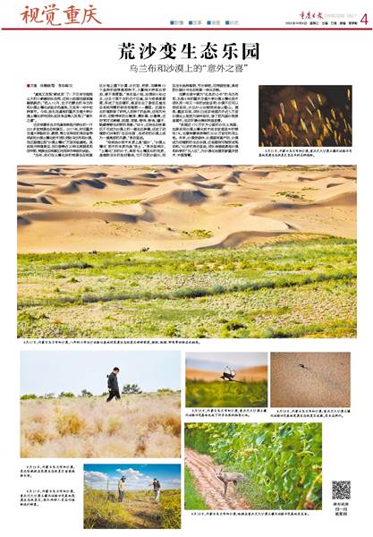 在蒙古语中意为“红色的公牛”的乌兰布和,扎根8年的重庆交通大学沙漠土壤化技术团队用一年又一年的试验证明:沙漠不仅可以变成良田,沙丘沙山也能变成金山银山。据悉,截至目前,团队已成功将国内外近5万亩沙漠化土地变为绿洲良田,除了防风固沙效果显著外,生态环境也得到明显改善。