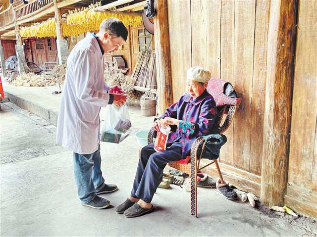 九月二十五日,孟春生上门给村民送感冒药。记者 周传勇 摄\视觉重庆 |