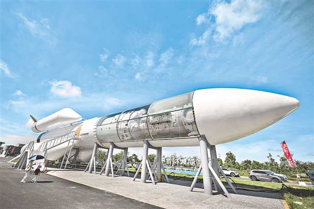 10月7日在文昌航天科普中心拍摄的长征五号B运载火箭模型。