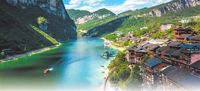 沿街居民,纷纷经商开店,有名为“浅山画廊”“水泊人家”的民宿,也有售卖乌江豆腐鱼、土家八大碗等地方餐饮美食的餐馆……