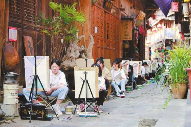 古镇这条仅有1.5公里长的狭窄街道,如今每年能吸引超过5万名师生和美术工作者前来创作。