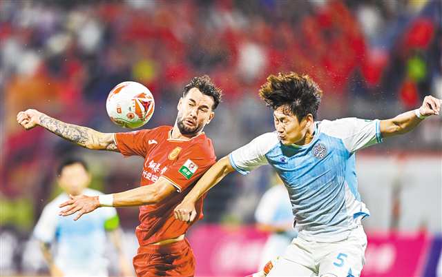 这也是张外龙回归重庆后的主场首秀。图为双方球员在激烈拼抢。