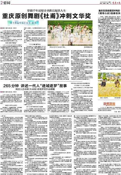 “我们希望每一部剧都能在舞台上立住,更在观众心里留住。”苟晓燕说,从《杜甫》的十年坚守,到更多本土题材的探索,如同“春夜喜雨”中润物无声的细雨一般,重庆的文艺工作者们努力让重庆文化既有大山大水的豪迈,也有人文艺术的精深。