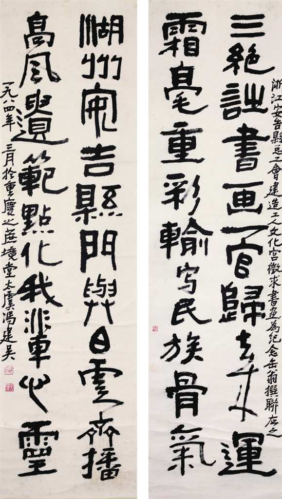 隶书龙门对 177×47.5cm×2 1984年 冯建吴 |
