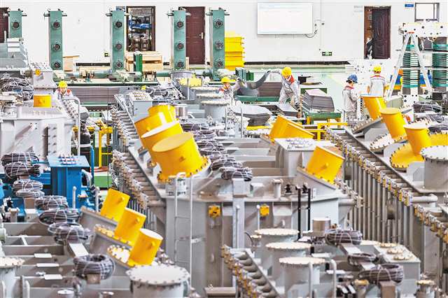 10月20日,位于涪陵区的重庆南瑞博瑞变压器有限公司生产车间内,工人们正在生产变压器。