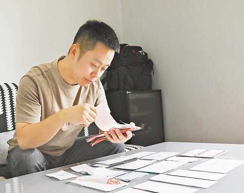 受父亲记账的影响,汪贵贤收藏着近20年来的各种工资单、购物收据、车票、飞机票等各类票据500余张,“我想着通过这些票据,记录自己经历的事情和收支明细。”