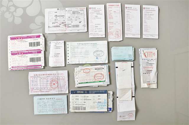这些票据记录了汪贵贤多年来的足迹,也见证着中国出行方式的巨大变化。