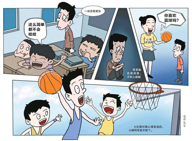 那之后,王颖的咨询室里多了“篮球元素”——有时会聊NBA球星,有时会一起玩“投篮积分”的小游戏:小杨每主动说一句话就能投一次球,积满10分就能换一份礼物。“第三次面询时,他跟我说上周体育课,和同学打了一场球,大家都说他打得不错。”王颖说,那一刻小杨的眼睛里有了光。