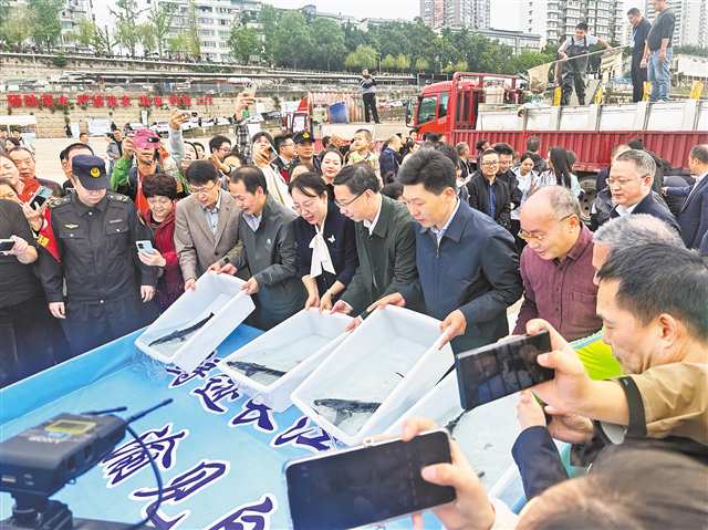 据了解,本次放流共投放国家一级保护野生动物长江鲟1126尾。“这是保护区重庆段首次放流长江鲟亲鱼。”市林业局相关负责人说,他们对所有放流个体均采用PIT标记,实现个体身份精准识别,并对所有亲鱼及20尾较大规格幼鱼加装了超声波信标,为后续追踪研究奠定基础。