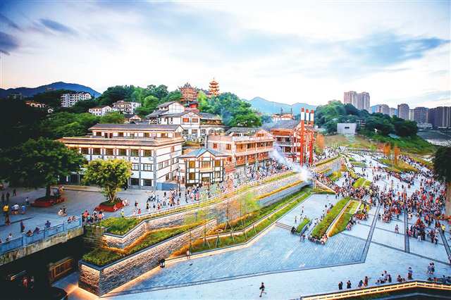 数据见证成效:观音桥商圈片区更新后,日均客流量达60万人次,节假日单日最高客流达到108万人次,同比增长10%,今年国庆15家重点企业零售额达3.5亿元,商圈吸引力、承载力、辐射力全面提升。
