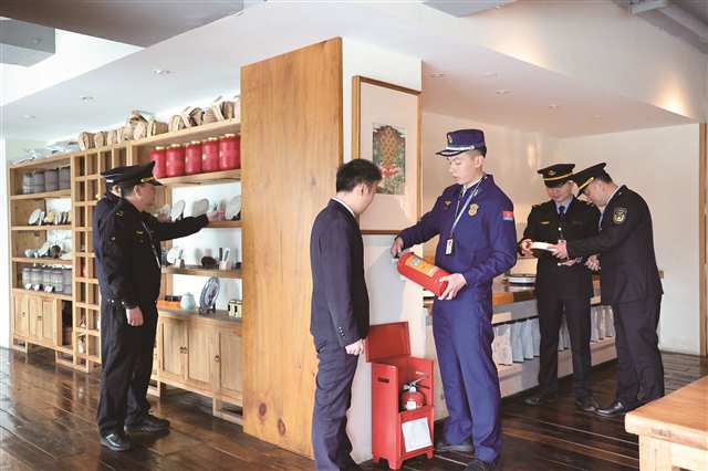 |   石井坡街道综合执法大队联合沙坪坝区市场监管局、区消防救援局对辖区酒店安全开展“综合查一次”(沙坪坝区城市管理局供图) |