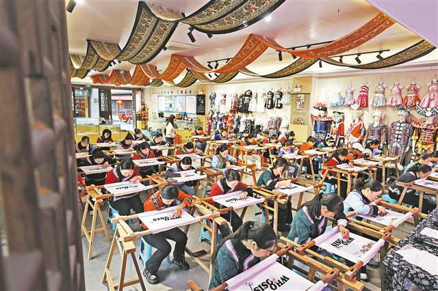 10月26日,彭水县蚩尤九黎城苗绣馆,绣娘们正在参赛。