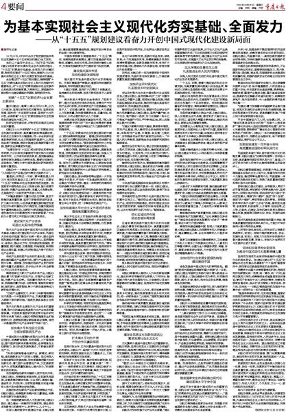 全会通过的“十五五”规划建议,准确把握“十五五”时期在基本实现社会主义现代化进程中的重要地位,对“十五五”时期我国经济社会发展作出系统谋划和战略部署,为乘势而上、接续推进中国式现代化建设擘画宏伟蓝图、指明前进方向。