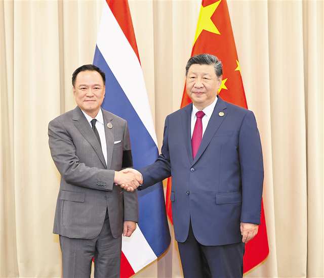 当地时间10月31日下午,国家主席习近平在韩国庆州出席亚太经合组织第三十二次领导人非正式会议期间会见泰国总理阿努廷。新华社记者 姚大伟 摄
