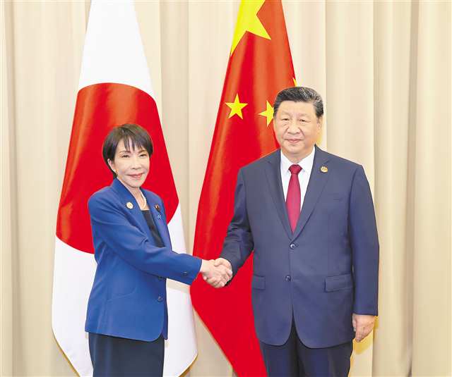 当地时间10月31日下午,国家主席习近平在韩国庆州出席亚太经合组织第三十二次领导人非正式会议期间应约会见日本首相高市早苗。新华社记者 丁林 摄