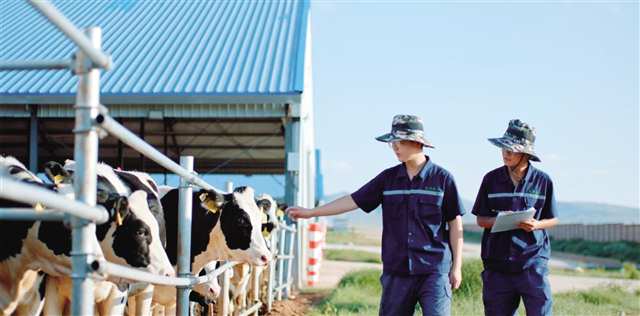 牧场兽医部工作人员现场观察奶牛健康情况,即时开展牛群健康台账的更新和维护 |