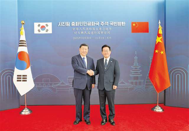 李在明表示,热烈欢迎习近平主席时隔11年再次对韩国进行国事访问,这次访问对韩中关系意义重大。韩中建交以来,各领域互利合作不断深入,有力推动各自经济发展。韩中是邻居,更是密不可分的伙伴。韩方高度重视对华关系,愿同中方共同努力,推动双边友好合作关系得到更大发展。双方要密切高层交往,增进政党、地方交流,妥善处理分歧。中国“十五五”规划明确了未来5年的经济发展方向和重点,韩方愿加强对华互利合作,维护产供链稳定,给两国人民带来更多福祉。韩方愿同中方密切人文交流,改善国民感情。韩方支持中方主办2026年亚太经合组织领导人非正式会议,愿同中方加强国际和地区事务的沟通和协调,共同促进地区和全球的和平发展。