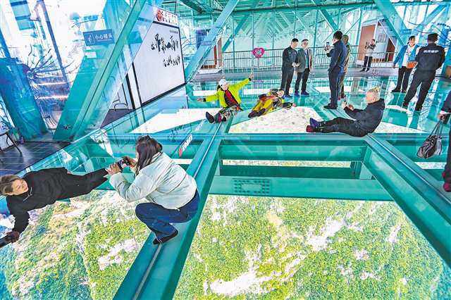 10月23日,众多游客在花江峡谷大桥的观光通道体验打卡。 记者 郑宇 摄/视觉重庆 |