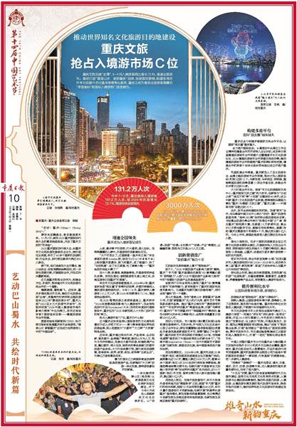 用心打造品牌。发布“雄奇山水 新韵重庆”品牌口号,打造“新韵重庆”无人机灯光秀、都市艺术节等现象级都市品牌。推出“重庆云海列车”“最宠游客的城市”“向世界讲述重庆”等宣传品牌,开展“与辉同行·重庆行”“甲亢哥重庆行”“库里重庆行”等活动,叠加《惊梦》《庆余年2》等影视IP,全矩阵传播量累计突破200亿人次。