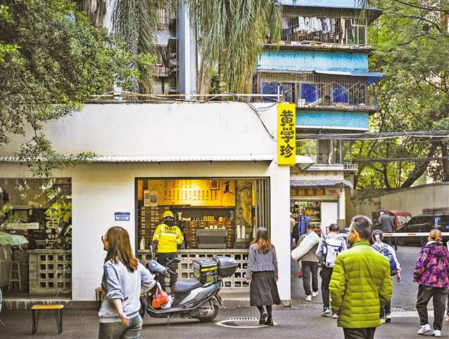 11月4日,沙坪坝区小龙坎街道嘉新社区,居民、外卖小哥在社区咖啡店取餐。