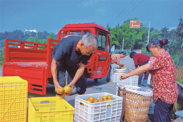 初秋时节,走进綦江区永新镇石坪村,漫山梨树挂满金黄果实,香气弥漫。依托3500亩梨产业基地,石坪村2024年实现鲜梨产量500万斤,产值约750万元。