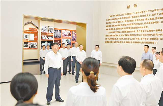 7日下午,习近平来到位于梅州市梅县区雁洋镇的叶剑英纪念园。在叶剑英纪念馆,习近平向叶剑英铜像敬献花篮,参观叶剑英生平事迹陈列。随后,又参观叶剑英故居。习近平强调,我们今天取得的伟大成就,都是建立在毛泽东等老一辈革命家打下的江山、攒下的家底之上的。要结合党史宣传教育,讲好老一辈无产阶级革命家的故事,教育引导广大干部群众特别是青少年传承红色基因、赓续红色血脉,永远听党话、跟党走。