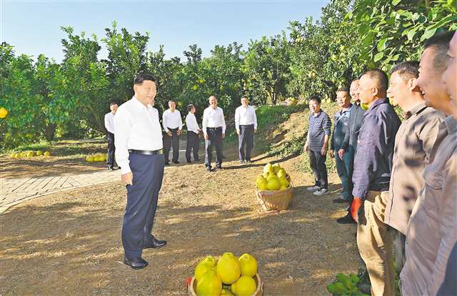 离开时,习近平同村民们亲切道别。他叮嘱,党和政府要继续加强对老区的政策扶持,老区广大干部群众要齐心协力、奋发图强。他祝愿乡亲们的日子过得像金柚一样又甜又美。