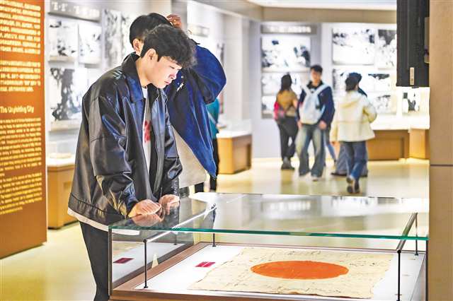 11月11日,重庆中国三峡博物馆,观众正在参观日军武运旗。记者 齐岚森 摄/视觉重庆 |