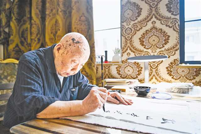 101岁的吴宗熹老人在练习书法。记者 齐岚森 摄/视觉重庆 |