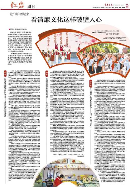 从湖北车间的工人杨光举,到云阳讲台的教师梁小红,一篇篇质朴的文稿,一个个动人的情节——清廉故事正以一种前所未有的亲和力与感染力,唤醒每个人心中的廉洁意识,让清廉文化从“塑”于形,到“说”于心。